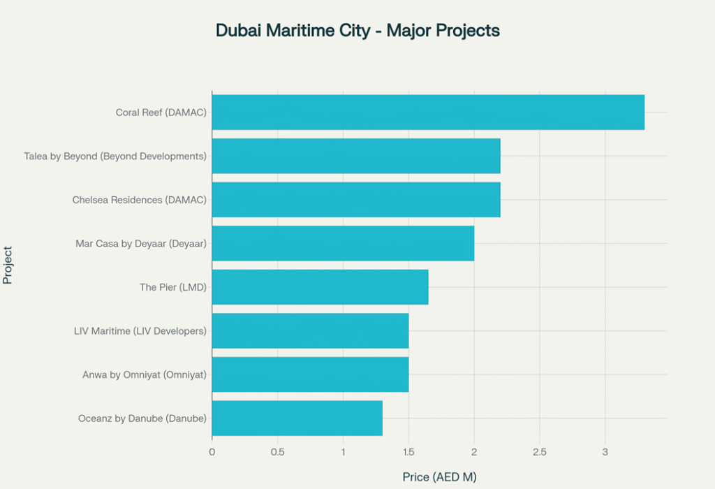 Figure 3: Price comparison: Dubai Maritime City vs major waterfront developments showing significant value gap