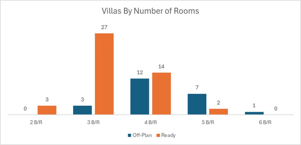 The ready market showed a more balanced structure than off-plan, with flats still leading, but villas making a much stronger contribution and highlighting continued appetite for completed family-oriented stock.
