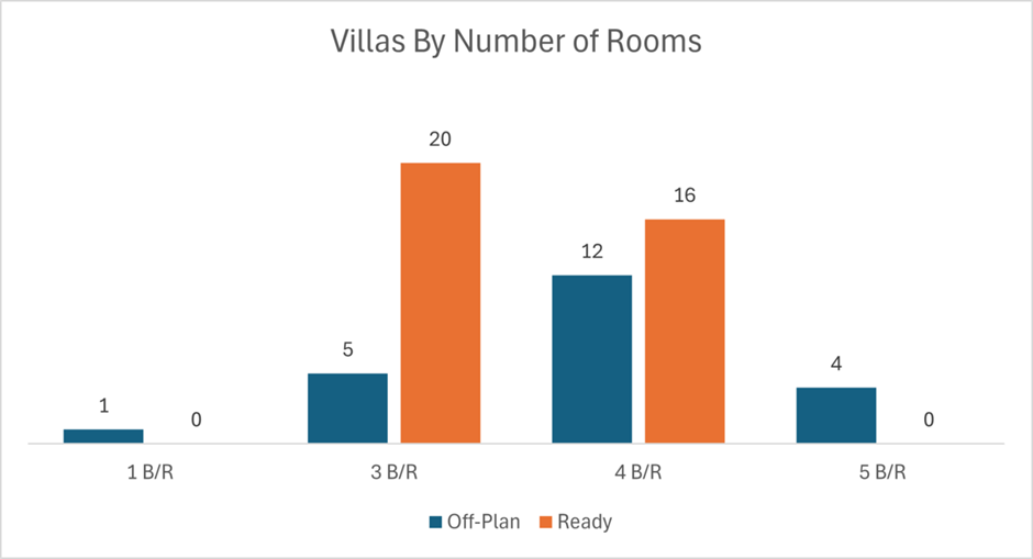 - Villa Market Niche: Villas amount to just 8.0% off-plan and 13.1% ready, indicating that larger, standalone homes continue to attract a smaller, but stable, buyer base.