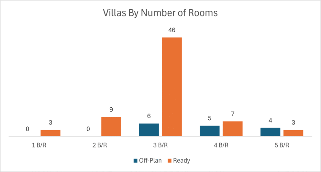 Off-plan activity was overwhelmingly flat-led, with villas a distant second and minimal commercial/hospitality volumes.