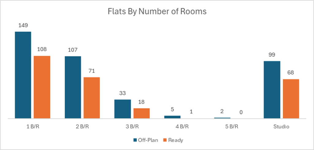 Off-plan activity was overwhelmingly flat-led, with villas playing a strong secondary role.