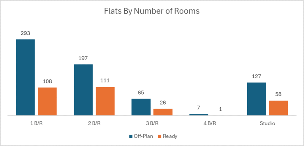 Off-plan activity was overwhelmingly apartment-led, with villas providing the only meaningful secondary contribution.