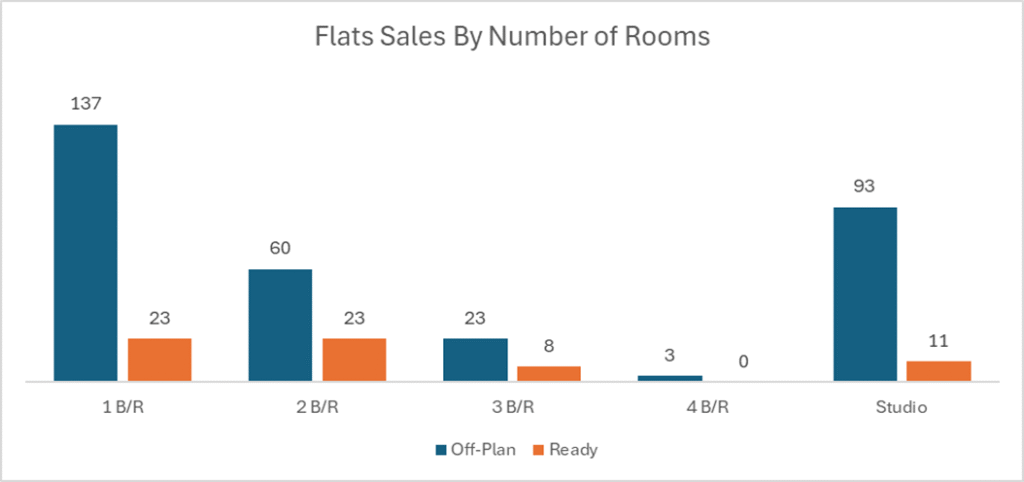 Ready transactions were led by flats, with villas also showing meaningful depth. Commercial and hotel apartment activity remained limited, keeping the secondary market more concentrated in mainstream residential product.