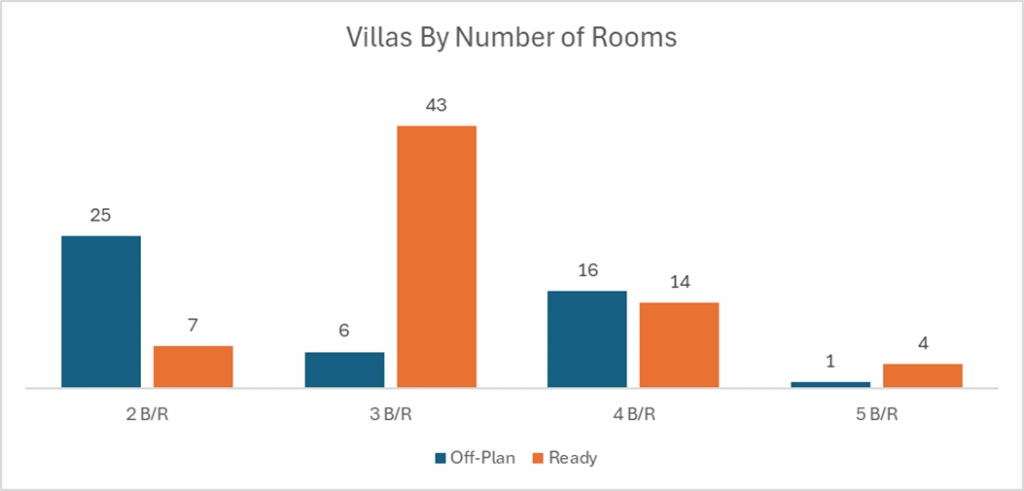 Ready transactions were broad-based but still flat-centric; villas provided a strong secondary lift.