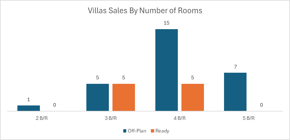 Ready transactions were also led by flats, though villas and commercial assets contributed a more meaningful share here than in the off-plan market.