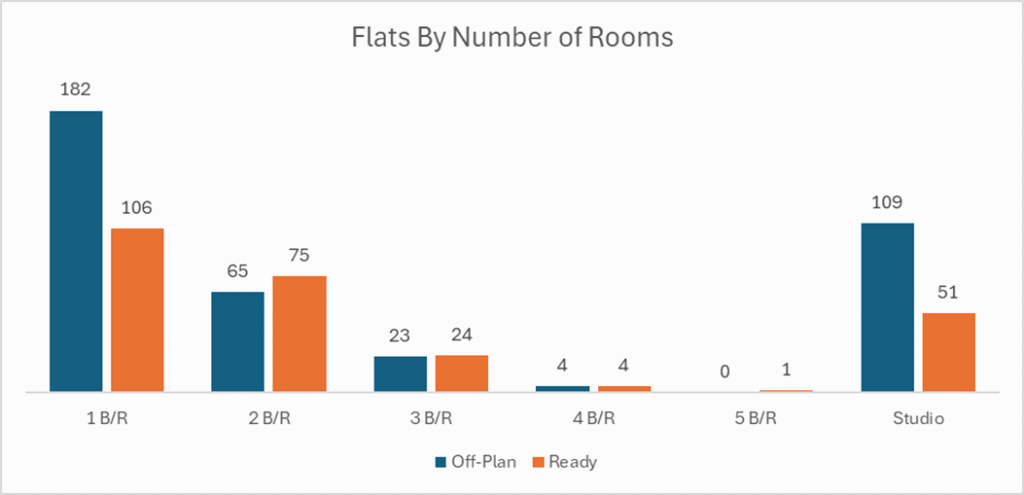 - Flats: AED 482,600,872 (65.1% of Ready)
