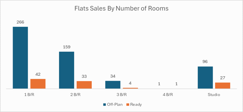 Off-plan activity was overwhelmingly driven by flats, while commercial assets also made a meaningful contribution, underlining continued investor preference for scalable, pipeline-led stock.