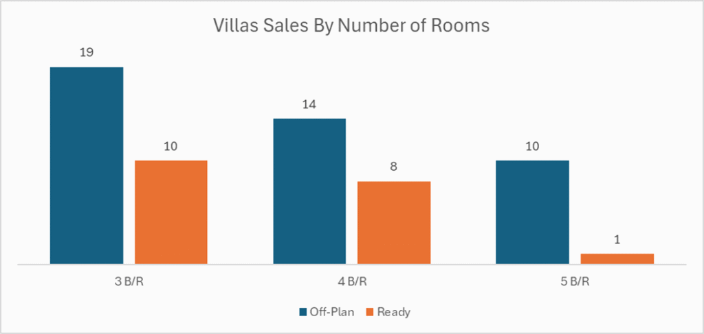 Ready-market demand was more balanced than off-plan, with villas taking a relatively strong share, suggesting healthy appetite for immediately usable family-oriented stock alongside apartment demand.