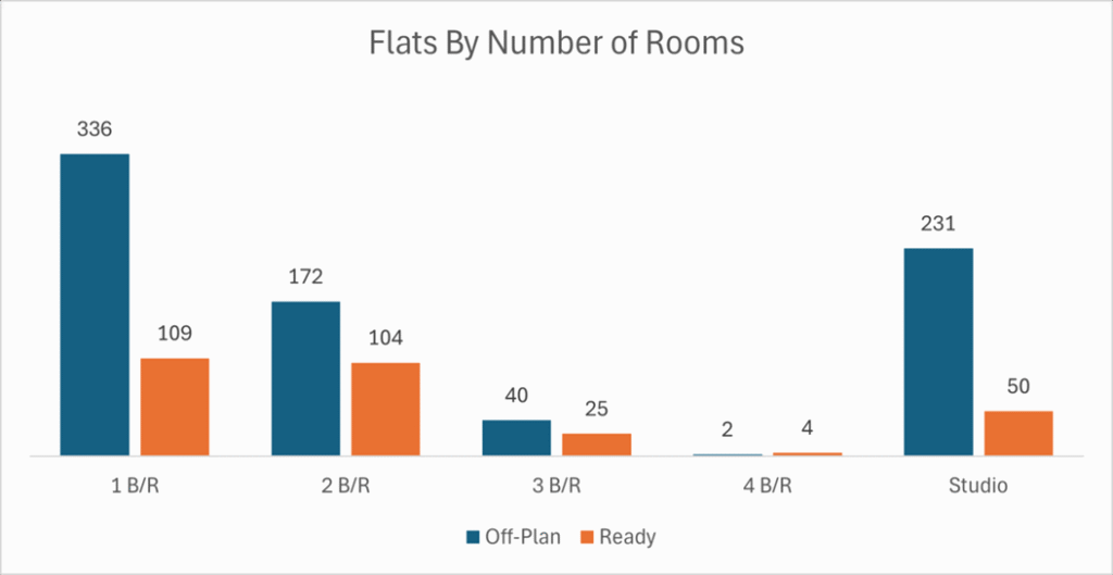 Flats overwhelmingly dominated the off-plan segment, comprising over nine-tenths of its value.