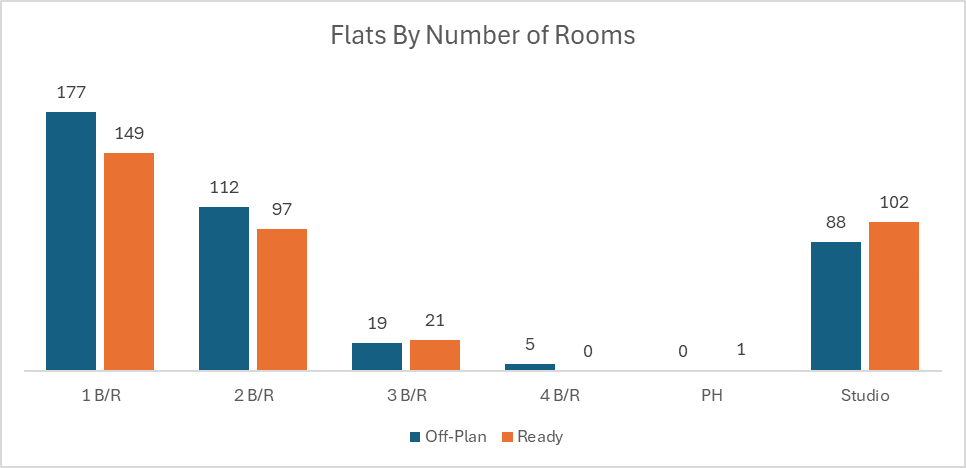Off-plan activity was overwhelmingly apartment-led, with villas adding a meaningful secondary contribution.