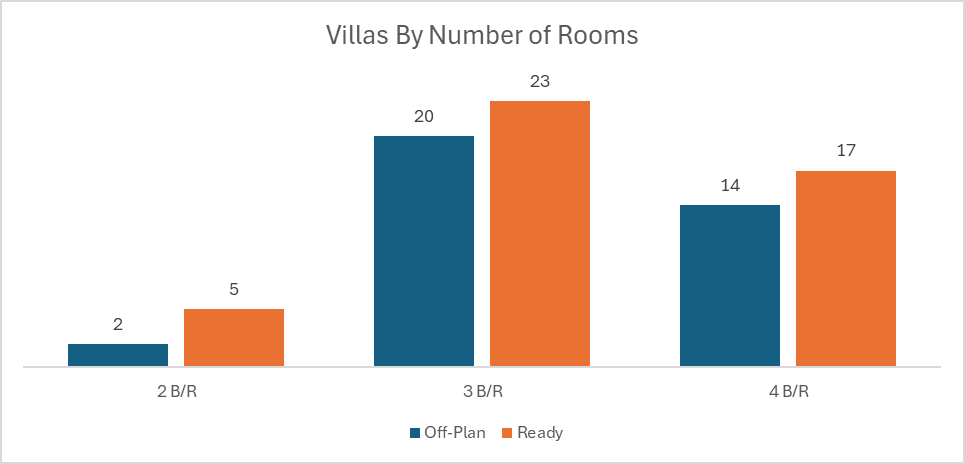 The ready market was even more flat-led than off-plan, with villas providing solid support and hotel apartments posting a more visible share than in the off-plan segment.
