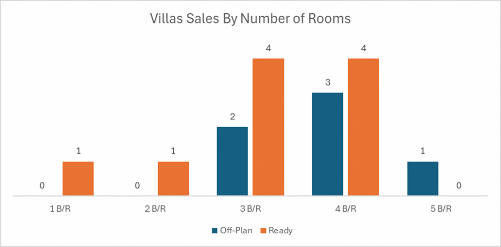 The ready market was also led by flats, but with a more balanced mix than off-plan, as villas captured a meaningful share of the day’s completed value.