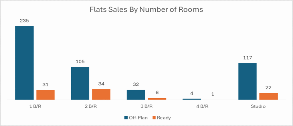 Off-plan demand was overwhelmingly driven by flats, which captured nearly nine-tenths of the segment’s value, highlighting how strongly apartment-led launches continue to anchor Dubai’s primary market.