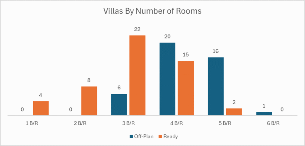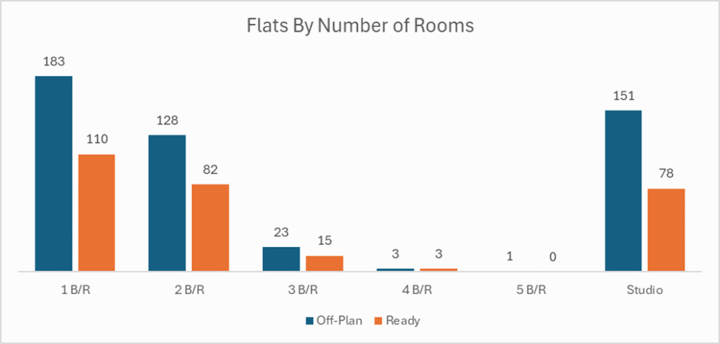 Off-plan activity was overwhelmingly apartment-led, with villas providing a strong secondary contribution and commercial adding a meaningful slice.