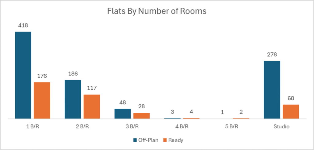 Off-plan activity was led decisively by flats, which captured nearly four-fifths of the segment, while villas added meaningful depth and commercial projects attracted selective investment capital.