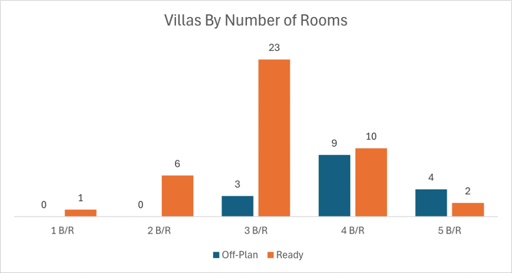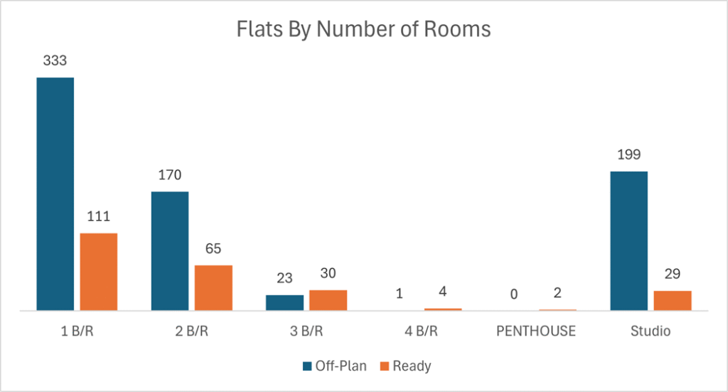 Ready transactions were anchored by flats, with villas providing a substantial secondary share.