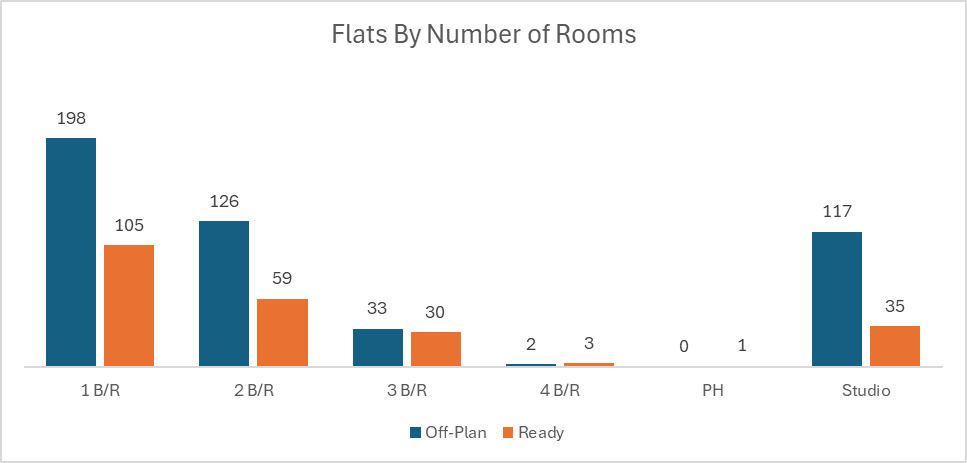 Off-plan activity was heavily concentrated in flats, which continued to anchor primary market demand, while villas and commercial assets added meaningful depth to the day’s pipeline.