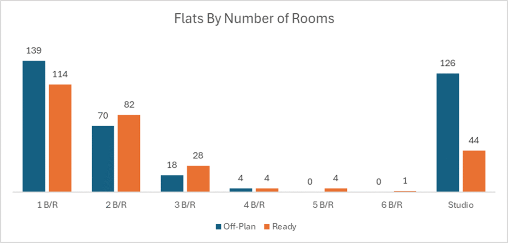 Ready transactions were strongly flat-led, indicating sustained end-user and investor appetite for completed inventory.