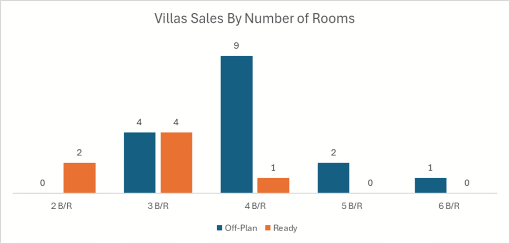The ready segment was also led by flats, though the mix was more balanced than off-plan, with villas, commercial assets and hotel apartments all making meaningful contributions.