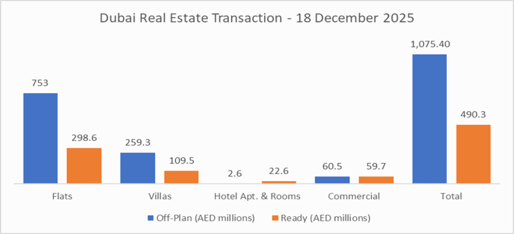 The day’s profile reinforces an off-plan-led market where mid-to-upper ticket apartment demand continues to set the pace, while the ready segment shows healthier diversification, particularly with commercial holding a solid slice of activity. If this balance persists, it supports a market that’s still growth-oriented in launches, but increasingly selective and value-driven in completed stock.