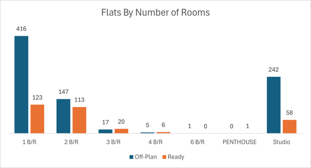 Off-plan activity was led decisively by flats, with villas a meaningful secondary driver.