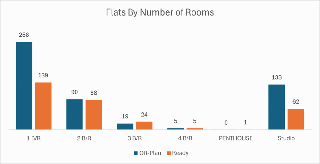 Off-plan activity was overwhelmingly driven by flats, which accounted for more than 93% of off-plan value.