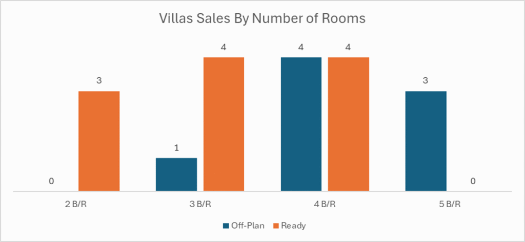 The ready market showed a similar structure, with flats dominating activity. However, villas captured a higher share compared to off-plan, reflecting sustained end-user demand and preference for completed, immediately occupiable assets.