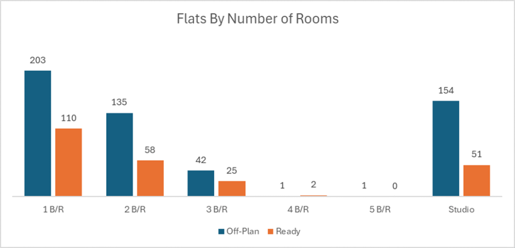 Off-plan activity was overwhelmingly driven by apartment sales, with villas contributing a meaningful secondary share while hospitality and commercial remained marginal.