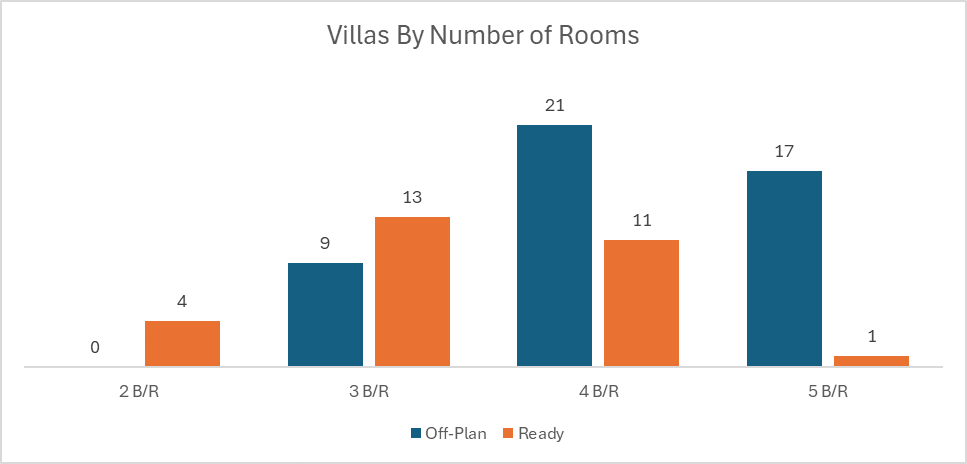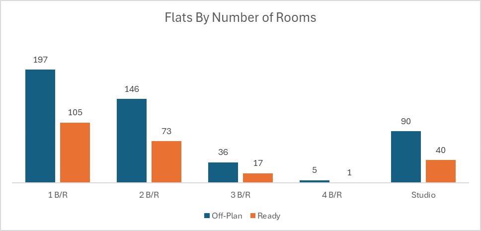 The ready market also leaned strongly toward flats, while villas captured a meaningful secondary share, suggesting that completed residential stock continues to attract the bulk of immediate transaction activity.