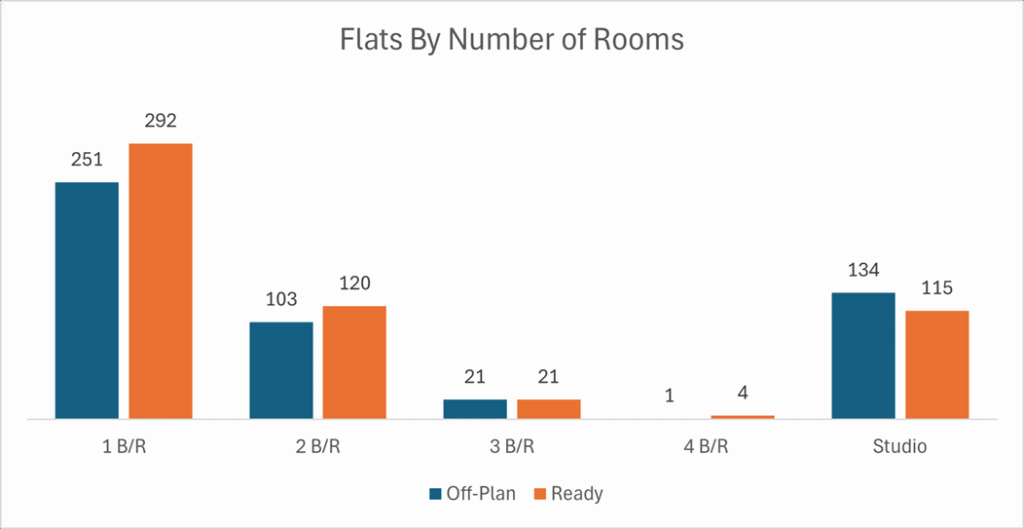 Ready sales were also led by flats, with villas providing a meaningful secondary share.