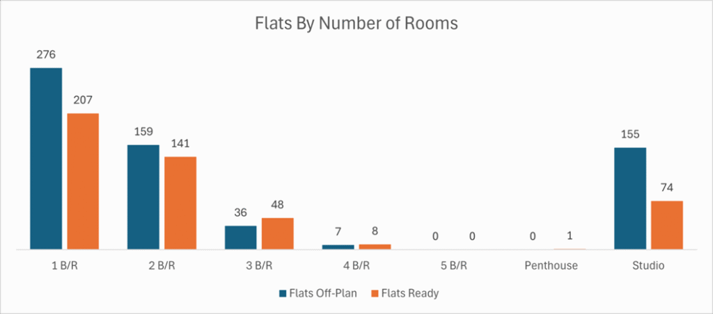 • Flats: AED 1.270 billion, 85.9 % of off-plan volume
