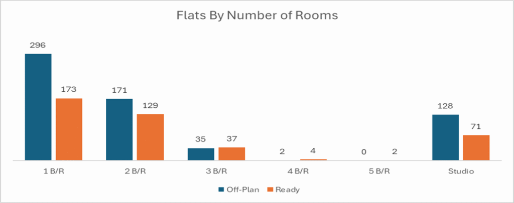 - Flats: AED 744,000,929 (65.4% of ready)