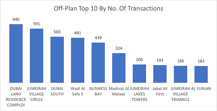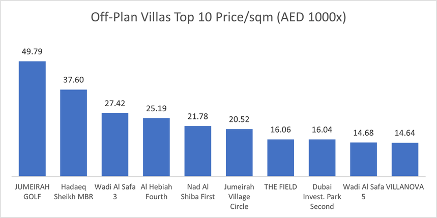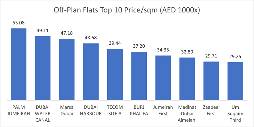 The average price per square meter for off-plan flats stood at AED 22,106, while off-plan villas averaged AED 19,591.