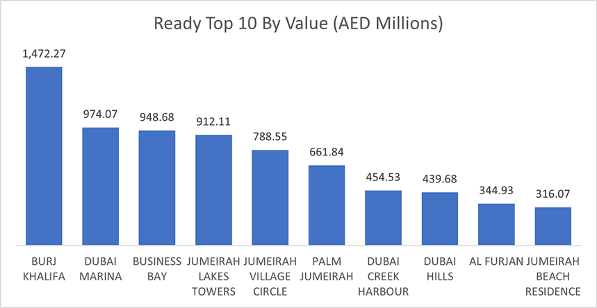 - Demand for premium locations: Areas like Burj Khalifa, Business Bay, and Palm Jumeirah continue to attract high-value transactions in both ready and off-plan segments.