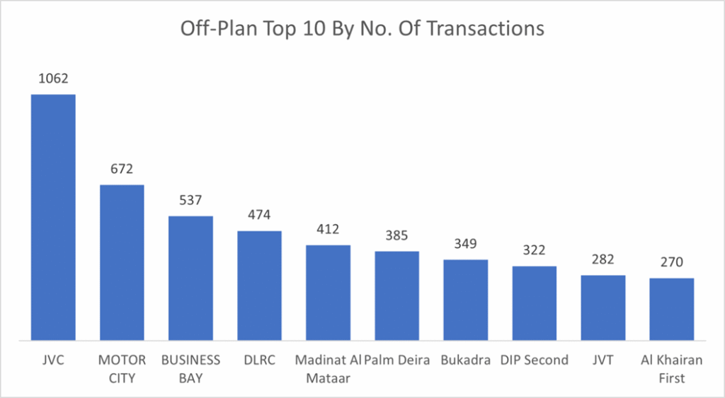 Business Bay came second in number of transactions but topped the chart by value of transactions