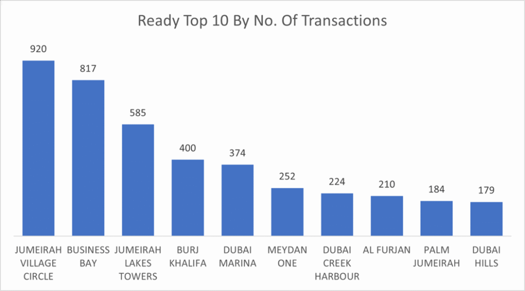 Business Bay is the top contributor across both off-plan and ready segments, appealing to both end-users and investors. Burj Khalifa and Dubai Marina continue to attract ultra-premium deals.