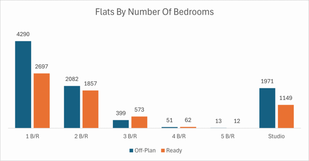 - Flats: AED 9,844,085,647 (66.7% of ready)