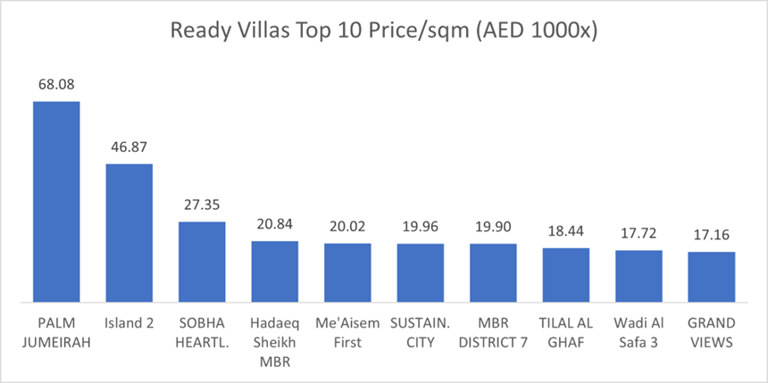 Total off-plan transactions amounted to AED 17.5 billion, with flats taking the lion’s share at AED 13.8 billion. Villas contributed AED 2.7 billion, followed by hotel apartments and rooms at AED 413.7 million, and shops and offices at AED 577.4 million. The robust off-plan performance continues to highlight investor confidence in upcoming projects, although the segment’s share this month is lower than some previous peak periods. - Ready Properties: