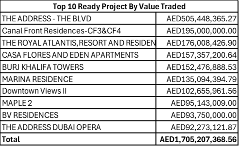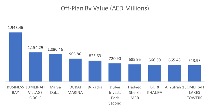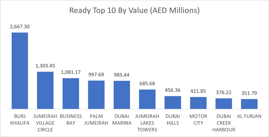 - High transaction values in off-plan (Business Bay) and ready (Burj Khalifa) markets