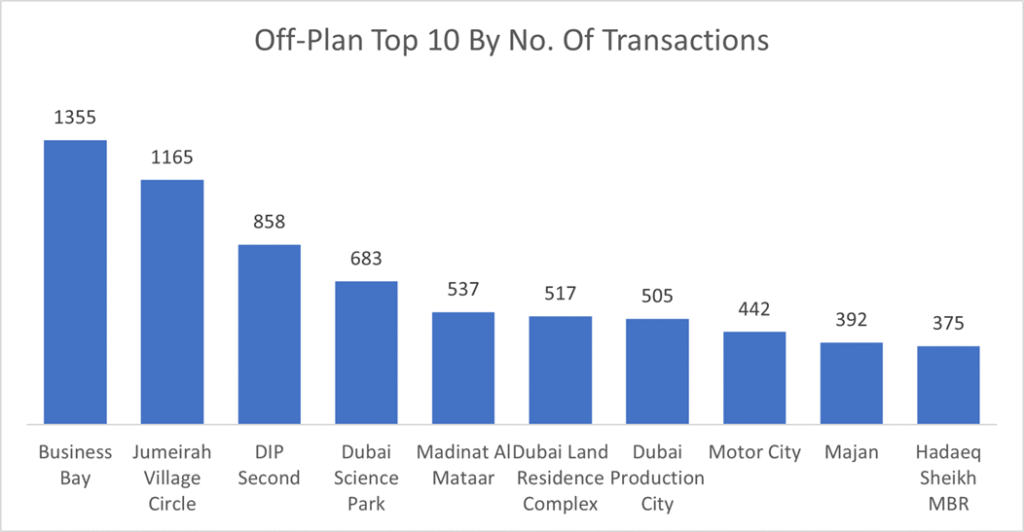 Business Bay dominated the off-plan market capturing more than 10% of the off-plan traded value, more than double that of the second place Trade Center Second.