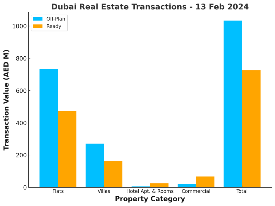 The Dubai real estate market continues to demonstrate resilience and investor confidence, with total property transactions reaching AED 1.76 billion on 13 February 2024. This surge in activity underscores the city’s growing appeal for both off-plan and ready property investments.