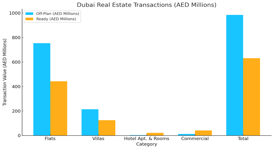 Dubai’s real estate market continues to exhibit resilience and dynamism, with off-plan properties playing a pivotal role in driving transactions. Ready properties remain a reliable choice for immediate investment, while sub-categories such as flats and villas reflect diverse buyer preferences. These trends underline Dubai’s position as a global real estate hub, catering to a wide spectrum of investors and residents alike.