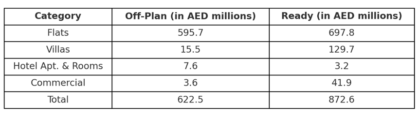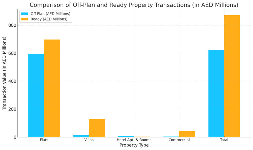 - Balanced Investment Portfolio: While ready properties are leading, the strong showing of off-plan flats reflects confidence in future developments, with buyers willing to invest in upcoming projects for potential value appreciation.