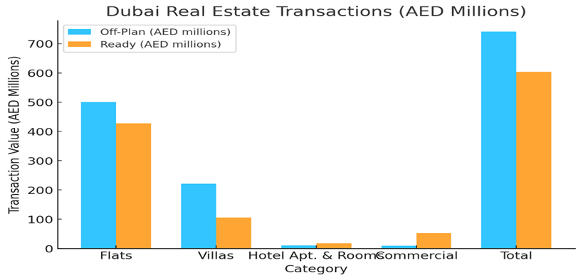 - Flats: AED 428,047,555 (70.9% of ready transactions)