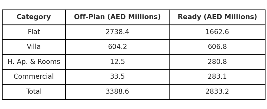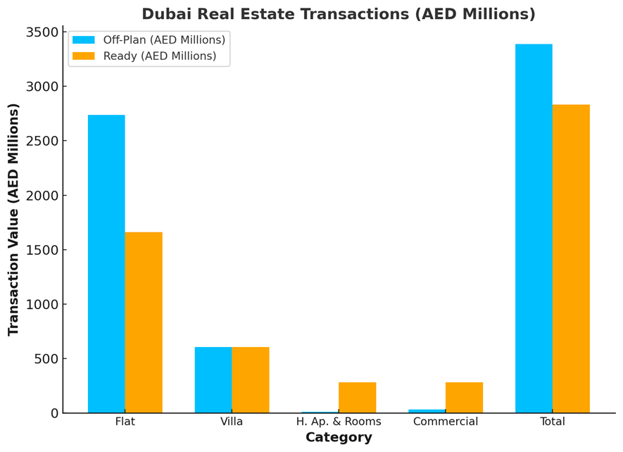 - Ready Properties: AED 2.83 billion (45.5% of total transactions)