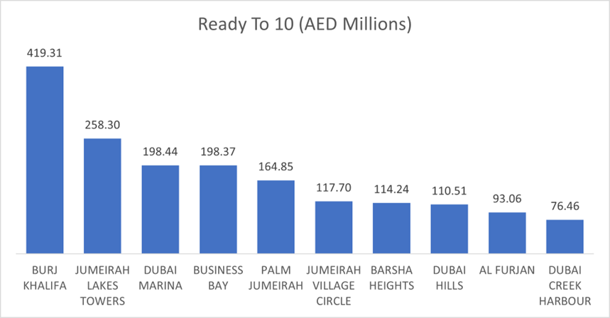 These five locations contributed AED 1.24 billion, making up 44% of total ready transactions.