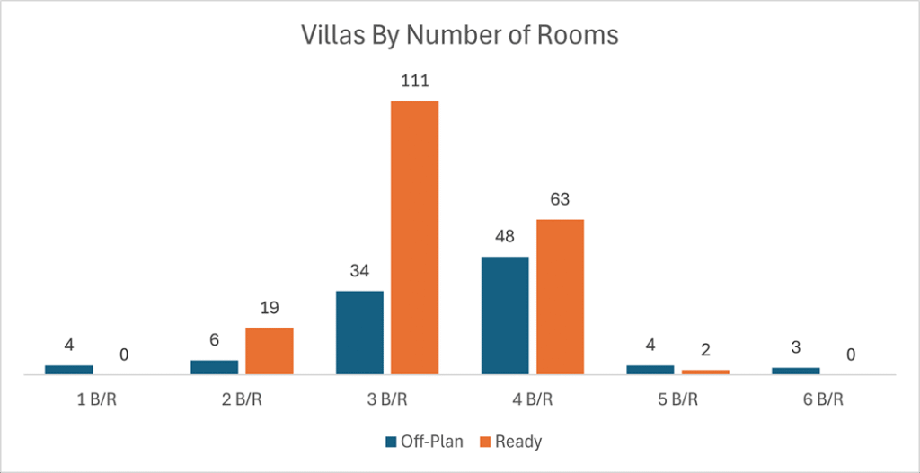 - 3-Bedroom & 4-Bedroom villas dominated the villas with 256 transactions combined.