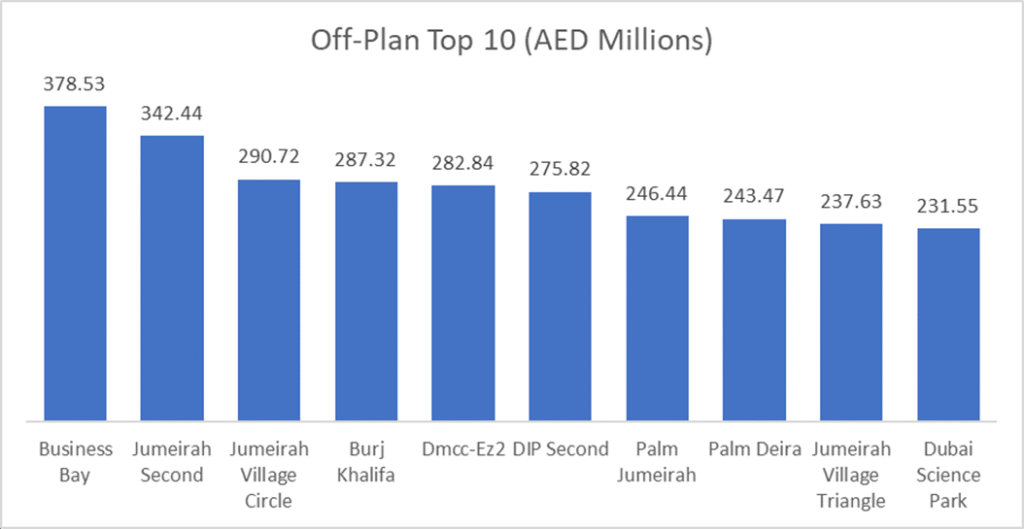 Top Performing Off-Plan Areas (by value traded, AED millions)