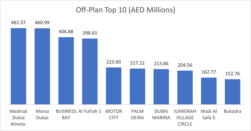 These top areas accounted for AED 2.9 billion, representing 61% of total off-plan transactions.