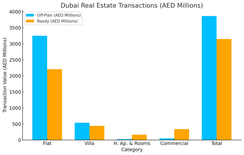 • Off-Plan Properties: AED 3.86 billion, contributing 55.1% to the total.